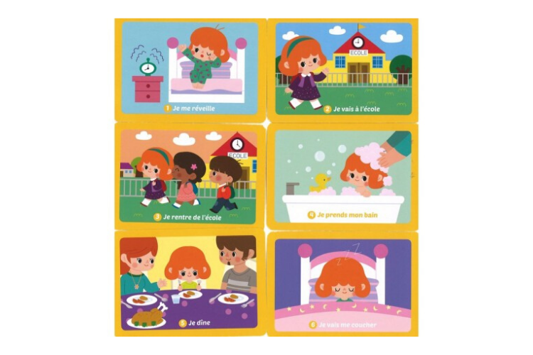 On aime beaucoup ce jeu facilement accessible pour les jeunes et qui a deux avantages : non seulement il aide les enfants à comprendre qu'il faut attendre son tour mais il les aide aussi à se repérer dans le temps et à développer les premières notions de chronologie. Le jeu est assez simple : on démarre une suite de cartes (sur la journée ou pour s'habiller). Les joueurs doivent ensuite chacun leur tour compléter la suite (s'il peuvent) ou piocher. C'est intéressant pour comprendre que l'on doit attendre son tour car on a besoin de l'autre pour compléter les suites.
