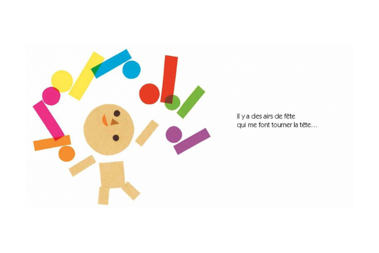 Dans ce livre, on accompagne un petit personnage qui est en proie à de nombreuses émotions différentes : il y a la fête qui fait tourner la tête, les bruits d'orage qui font peur et les petits riens qui causent des chagrins. Un livre qui utilise des couleurs et des formes pour faire passer le message de manière efficace.