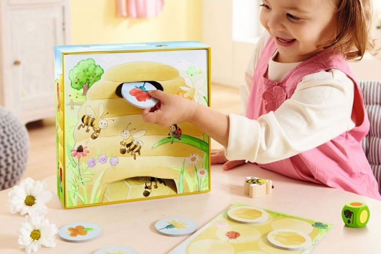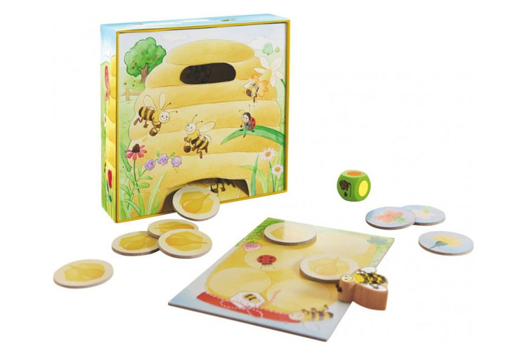 La mécanique de ce jeu de coopération pour les tout-petits est assez unique : on jette chacun son tour le dé et on s'empare d'une plaquette fleur de la couleur indiquée pour l'insérer dans la ruche. La plaquette ressort de la ruche dans l'autre sens (magique !) et s'est transformée (ou non) en miel. Le but du jeu : remplir le pot de miel, alors tout le monde s'y colle pour gagner. Les parties sont courtes et très bien adaptées aux plus jeunes. Il existe deux variantes du jeu (pour deux fois plus de fun !)
