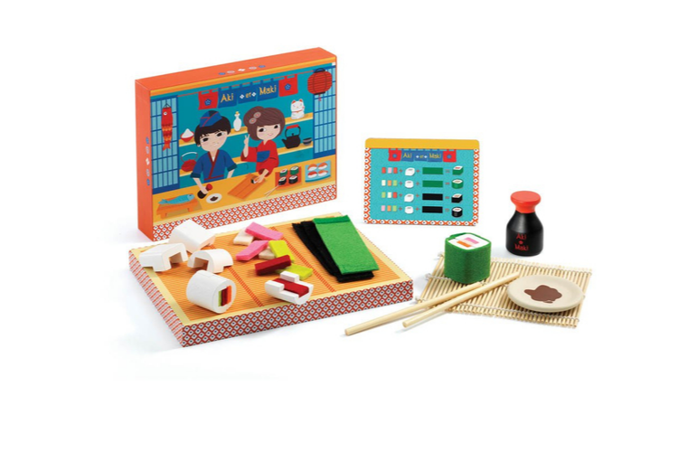 Aki & Maki Sushi Game c'est un beau jeu qui permet aux enfants de tenir leur propre petit restaurant de sushi. On est bien d'accord qu'ils ne mangent probablement pas de sushis à 3 ans (quoi que...) mais ils sont certainement capables de comprendre de quoi il s'agit et ils prendront certainement plaisir à tenir leur petite enseigne. Ils devront donc prendre les commandes et servir les produits commandés. Si l'univers de sushis ne leur parle pas, la version barbecue existe également chez Djeco !