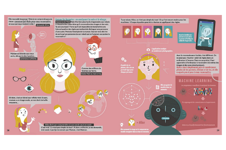 Alice accueille un nouveau membre dans sa famille. Il ne s'agit pas d'un petit frère ou d'une petite sœur, ni d'un chien ou d'un chat mais d'un robot nommé Babsi ! La femme robot est très intelligente : elle connait les réponses à tout. Par contre, elle n'arrive pas à monter ou descendre les escaliers... Dans ce livre, les enfants découvrent au travers des questions d'Alice ce qu'est l'intelligence artificielle, comment les machines fonctionnent, ce qui les différencie des êtres humains... Une petite histoire accompagnée de plusieurs explications imagées sur le fonctionnement du cerveau, du corps, des machines, etc.
