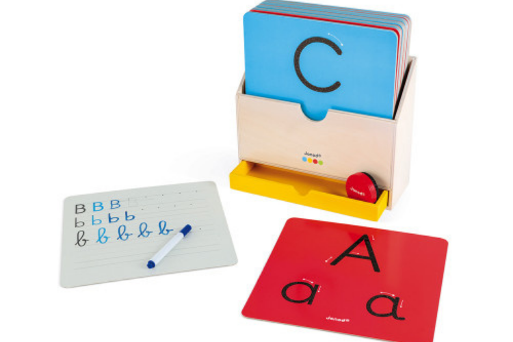 Pour les enfants qui ont vraiment d'aller plus loin dans l'apprentissage de l'écriture ce set est vraiment parfait : il contient des cartes tactiles d'un côté pour découvrir les lettres et les différentes écritures. Sur le recto de chaque carte, il est possible de s'entrainer au tracé sur les surfaces effaçables. Pratique, les fiches se rangent, avec la brosse et le stylo fourni, dans le tiroir du magnifique coffret en bois. Les pièces sont peintes à l’eau.