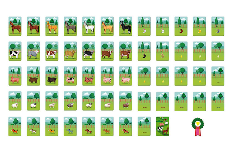 Farm Pursuit est un jeu de stratégie idéal pour stimuler la rapidité, l'attention, la concentration et la stratégie. Le but du jeu, c'est de se débarrasser de ses cartes et pour cela, il faut les aligner du plus petit au plus grand animal, sauf que certaines cartes possèdent une clochette (et ça vient compliquer le jeu !). C'est ludique et stimulant pour apprendre à se concentrer dans un contexte qui demande rapidité et réflexes !