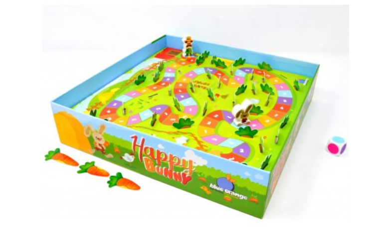 Happy Bunny est un jeu coopératif très engageant où l'on doit ensemble aider le lapin à cueillir plein de carottes sans se faire rattraper par le fermier. Les petites carottes sont plantées dans la boîte de jeu, ce qui le rend plutôt amusant pour les plus jeunes. Comme souvent chez cet éditeur de jeux, l'univers visuel est esthétique et le matériel très pratique. De quoi se serrer les coudes pour aider notre petit lapin !