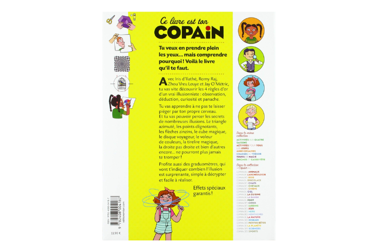 On peut faire ce jeu tout seul ou avec ses copains et ses copines (plus on est de fous, plus on rit n'est-ce pas ?). Le livre contient 37 illusions d'optique à découvrir, analyser et reproduire ! Sur chaque double page, une illusion est expliquée en détail pour se rendre compte à quel point notre cerveau nous joue parfois des tours... Parmi les illusions, on retrouve des toute-prêtes, des faciles à bricoler et des grands formats. Un livre-jeu ludique pour apprendre à réfléchir et se concentrer.