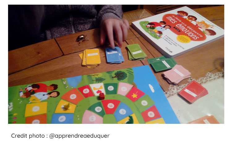 Vous connaissez le classique Jeu de l’oie ? Voici une version un peu différente… spécialement appliquée aux émotions ! A utiliser en famille comme véritable outil pédagogique, ce jeu surfe sur les bases de la psychologie positive et de l’intelligence émotionnelle pour aider les parents à accompagner leurs enfants à identifier, exprimer et partager leurs émotions. On part donc en famille pour un parcours de 63 cases ponctuées de joies, de défis, de souvenirs, d’entraide, etc. avec 140 cartes (étoffés d’astuces et de conseils pour guider les parents pas à pas dans la quête de l’apprentissage émotionnel de leurs petits).
