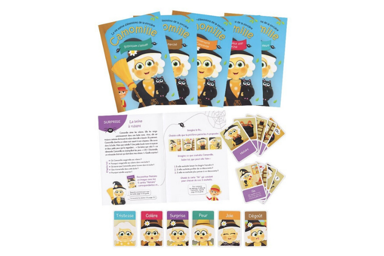 Ce jeu a été développé comme outil d'accompagnement des professionnels comme les orthophonistes ou les psychologues... mais il est idéal pour aider les enfants à canaliser certaines émotions pour face à des situations récurrentes, par exemple (peur spécifique, tristesse liée au malheur des autres, etc.). La boîte contient plusieurs histoires à illustrer avec des images. Quatre fins possibles sont proposées, correspondant à différentes stratégies de régulation émotionnelle. Le choix de la fin se fera sur le critère de la préférence personnelle ou de l'intention de la petite sorcière concernant son émotion (l'apaiser, l'intensifier, ne plus y penser...). Un bon support de discussion pour aider les enfants à mieux comprendre leurs émotions.