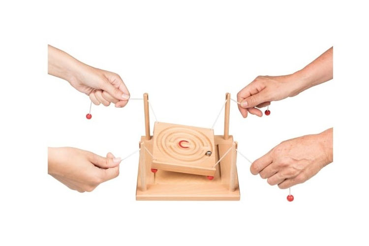 Ce labyrinthe va demander coordination et dextérité... en duo ! Effectivement, ce jouet est fait pour être manipulé par deux paires de mains. Il faut contrôler le plateau en équipe pour guider la bille jusqu'au bout de son parcours. Il va falloir accorder vos gestes avec ceux de votre partenaire pour mener à bien votre mission : tout est question d'adresse et de communication. Le plateau est réversible afin d'offrir deux parcours à différents. Un jeu en bois issu de forêts gérées durablement, fabriqué en Allemagne.
