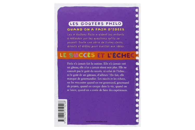 Les goûters philo abordent des thématiques diverses et intéressantes qui font progresser la pensée et le questionnement des enfants. La collection comporte plus d'une trentaine de livres. Dans ce livre en particulier, on traite du succès et de l'échec, des situations que les enfants retrouvent dans leur quotidien à l'école, avec leurs amis, à la maison, dans leurs loisirs, etc. C'est quoi réussir ? Est-ce que c'est grave d'arriver le dernier ? Comment rebondir après un échec ? On y retrouve beaucoup d'exemples illustrés qui apprendront aux enfants à relativiser le succès et l'échec.