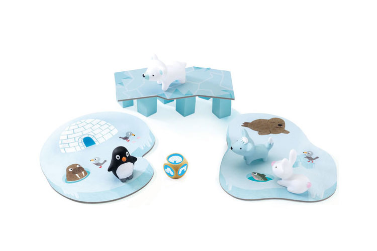 Voici un joli petit jeu constitué de deux plateaux (la banquise et l'igloo) et d'un pont. Le but ? Faire traverser tous les animaux pour qu'ils rejoignent l'igloo, mais attention : le pont menace de s'écrouler. C'est un jeu de coopération pour les plus petits où on apprend à jouer et à gagner tous ensemble. Les règles sont simplissimes, ce qui facilitent la prise en main du jeu dès 2-3 ans.