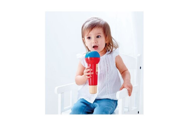 Un micro en bois sans pile qui amplifie les sons grâce à sa caisse de résonance. Les enfants découvrent ce jeu avec grand plaisir. Il leur permet de découvrir leur voix et d'apprendre comment la moduler. Et bien sûr c'est l'outil idéal pour pousser la chansonnette.