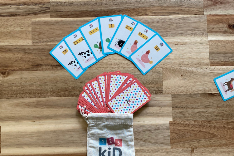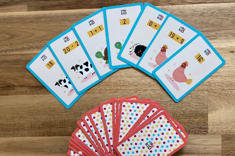 Un jeu de cartes muti-usage pour rendre l'apprentissage des additions et des soustractions plus amusantes. Ce jeu de cartes colorés aux illustrations attrayantes se base sur le principe du Mistrigri : toutes les cartes ont une "jumelle" sauf 1 ! Dans ce jeu il s'agit de l'araignée 0+0. Toutes les autres cartes trouvent leur double : pour le retrouver il faut additionner ou soustraire. Par exemple: la poule indique 13+3 et sa jumelle 16. On peut donc l'utiliser comme Memory, Mistigri ou simplement pour résoudre des calculs.