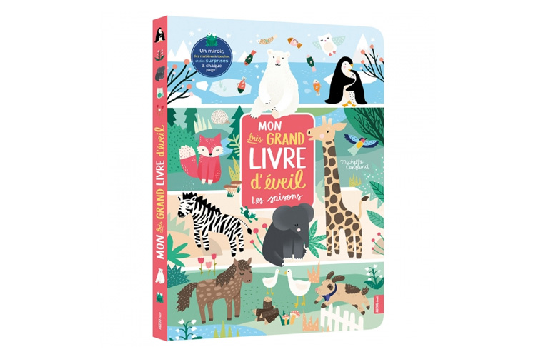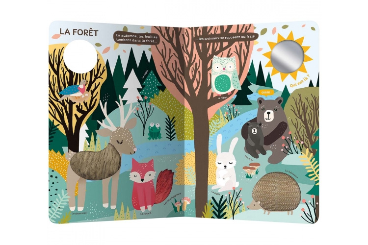 Cet album incontournable permet de découvrir les animaux. On y découvre le monde des animaux en y touchant de belles matière. Avant deux ans, les enfants aiment manipuler le livre puis en grandissant cela devient un rituel amusant où ils nous interrogent sur le nom des animaux ou nous les récitent. Ce livre offre 3 explorations par page, un miroir, un flap en tissu, etc. Un livre grand format solide avec de nombreuses surprises raviront les enfants : 10 pages de bonheur, magnifiquement illustrées.