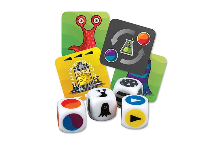 Voici un jeu d'ambiance évolutif où il n'y a pas de temps mort : tout le monde joue en même temps ! Le but du jeu, c'est de rattraper les amibes qui se sont échappées et qui courent dans tous les sens. Il faut du sang froid, un sens de l’observation pointu et un maximum de rapidité pour gagner. Lancez les 4 dés très spéciaux qui vous indiqueront quel laboratoire a laissé s’échapper l’Amibe et à quoi elle ressemble. Le premier qui désigne la bonne amibe gagne un point, mais attention aux apparences...