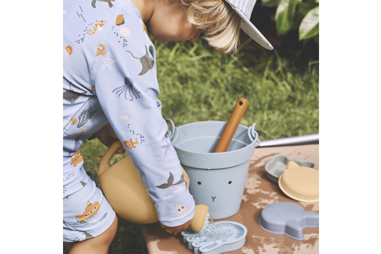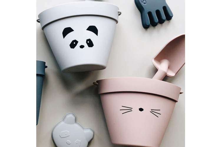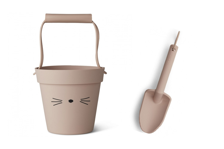 Voici le kit qu'il faut à chaque petit pour partir en exploration à la plage, et faire des châteaux à la pelle ! Plus pratique qu'un râteau, la pelle et le seau Liewood sont de belle facture : un beau design en silicone doux. Trois modèles sont disponibles selon les goûts : panda gris, chat rose ou moutarde. Ils sont légers et résistants à l'eau et au sable, de quoi s'amuser pendant des heures !