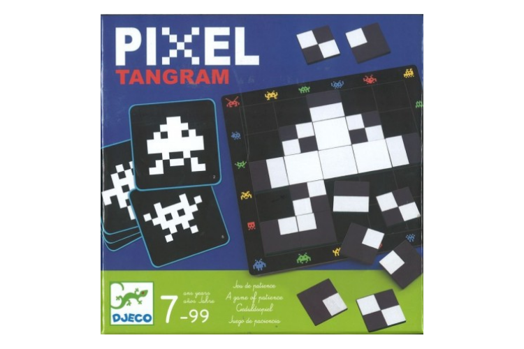 Pixel Tangram est un jeu avec des aliens qui demande de la concentration et de la réflexion ! Il y a plusieurs cartes modèles avec des extraterrestres à reconstituer à l'aide de pièces de tailles identiques mais avec des impressions différentes. Tout ça n'est pas si simple... Les solutions sont incluses.