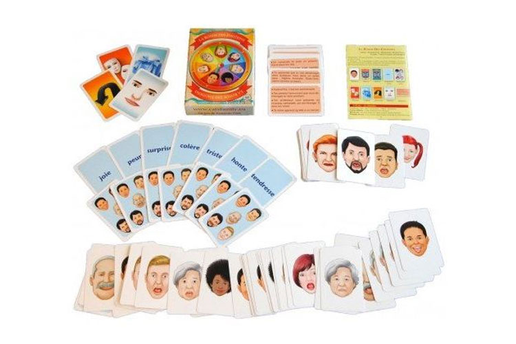 La ronde des émotions est un jeu de mimes qui permet de s’entraîner à ressentir et faire deviner les émotions de la vie de tous les jours : la colère, la honte, la joie, la peur, la tristesse, la surprise, la tendresse et la honte. On incarne jusqu’à 10 personnages de tous âges et on visite et revisite les émotions au travers des 10 variantes de la règle du jeu. Un jeu qui permet, en outre, de sensibiliser à l’empathie en se mettant dans la peau des différents personnages.