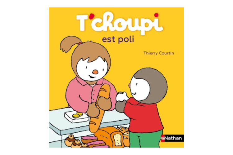 Peut-être que vous connaissez déjà les livres T'choupi destinés aux enfants de 2 à 4 ans qui racontent les petits tracas du quotidien, les émotions fortes et la vie de famille. Leur format épais, aux coins arrondis et aux pages plastifiées sont idéales. Dans cette histoire, T'choupi est malpoli et ne dit pas bonjour à sa voisine. Heureusement que papa est là pour lui apprendre quelques formules de politesse à la boulangerie !