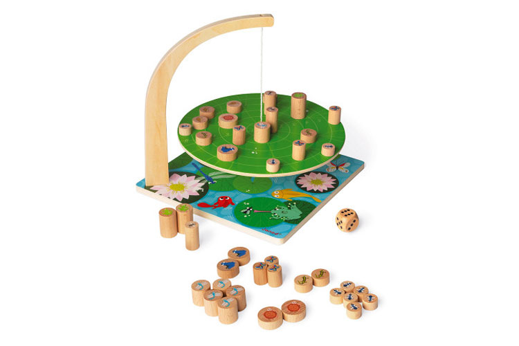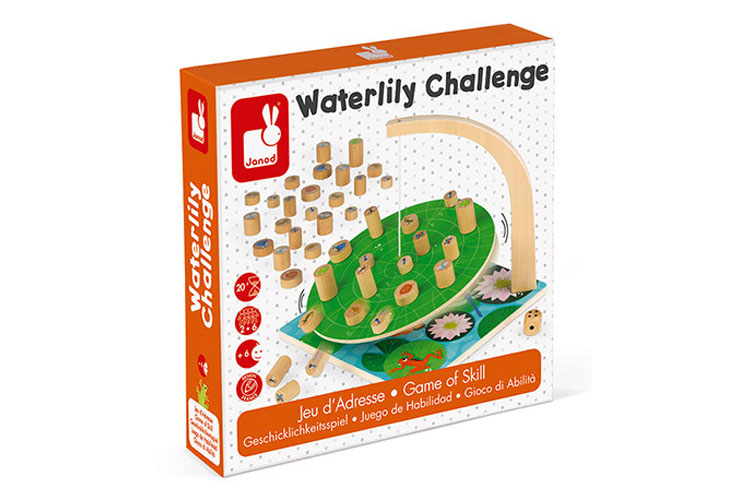 Waterlily challenge est un joli jeu d'adresse en bois. Un plateau suspendu représente un nénuphar au dessus d'une mare. Le but du jeu : positionner un maximum d'insectes et de petits animaux en équilibre, sans les faire tomber dans l'eau. Il faut donc être habile et faire preuve de minutie pour ajouter les pions en bois un à un sur le nénuphar. On se concentre, on respire et on retient son souffle pour bien placer nos pions : si ça bascule, c'est perdu !