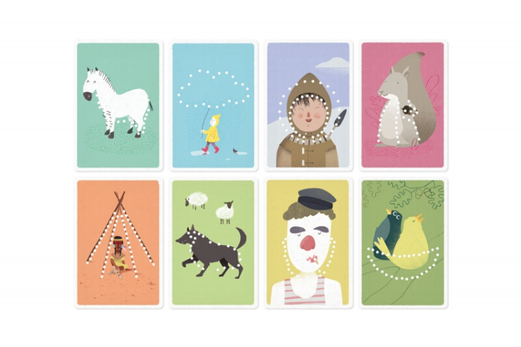 Un jeu de piquage poétique et super mignon. C'est une introduction à la couture qui permet aux enfants d'exercer leur dextérité et de développer leur motricité fine tout en faisant preuve d'imagination. Le jeu contient 8 cartes percées, des fils de laine de différentes couleurs et une aiguille qui ne pique pas. Les enfants peuvent décider de positionner le fil de laine à leur guise selon leurs idées et leurs envies.